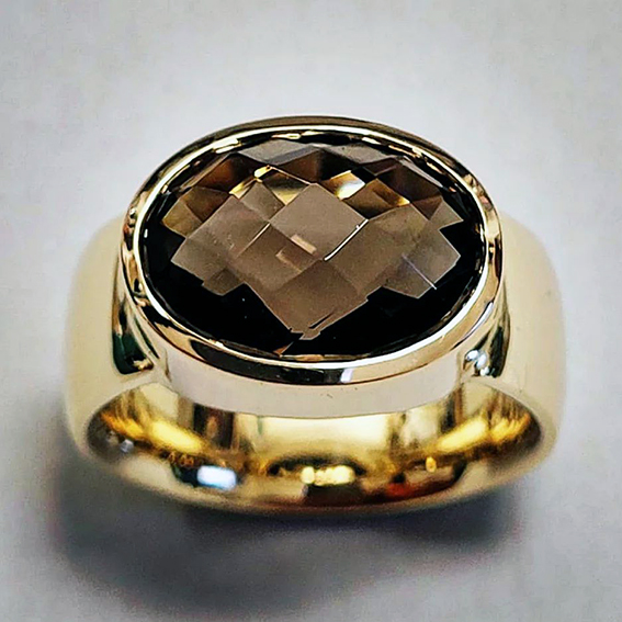 In unserer Werkstatt verarbeiten wir edle Metalle, fantasievoll geschliffene Farbsteine und strahlende Brillanten zu unverwechselbaren Schmuckstücken.